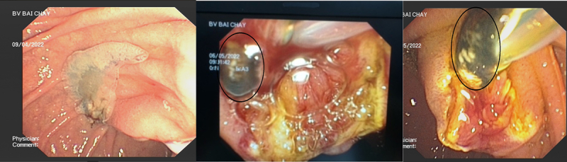 Quá trình chụp nội soi đường mật, các bác sĩ đã phát hiện sán lá gan trong ống mật chủ và gắp bỏ qua nội soi, lấy sỏi ống mật chủ, đặt stent đường mật. Thủ thuật kết thúc an toàn. Sau khi bơm rửa lại đường mật kiểm tra thấy dịch mật thoát ra tốt. 24h sau can thiệp ERCP, sức khỏe bệnh nhân ổn định, tiếp tục được điều trị chống nhiễm trùng và điều trị đặc hiệu diệt sán lá gan.