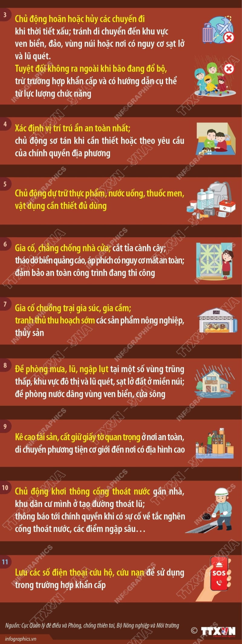 Để đảm bảo an toàn tính mạng, tài sản trước bão và mưa lũ sau bão, người dân nên tuân thủ các khuyến cáo: Theo dõi dự báo, cảnh báo, cập nhật diễn biến của bão; xác định vị trí trú ẩn an toàn...
