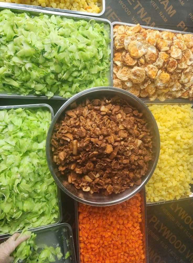 Các thành viên của đoàn từ thiện đã chuẩn bị chu đáo từ chuẩn bị thực đơn, tới chế biến nguyên liệu với mong muốn mỗi suất cơm trao tới tay người bệnh đều đảm bảo an toàn thực phẩm, giàu dinh dưỡng và phù hợp với khẩu vị của người bệnh. Mỗi phần cơm đa dạng các món ăn từ thịt, trứng, rau củ nóng hổi, tươi ngon. Các suất ăn được đóng hộp, bảo quản tươi ngon trong quá trình vận chuyển đến bệnh viện. Sự tỉ mỉ, trách nhiệm và trân trọng trong từng khâu nhỏ nhất của đoàn thiện nguyện đã khiến bữa cơm trao tay người bệnh trở nên thật đặc biệt ý nghĩa, ấm áp.