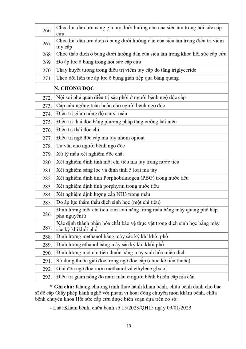 Nội dung thực hành khám bệnh, chữa bệnh đối với bác sĩ cấp giấy phép hành nghề phạm vi hành nghề chuyên khoa HSCC 2026/03/05 03:27