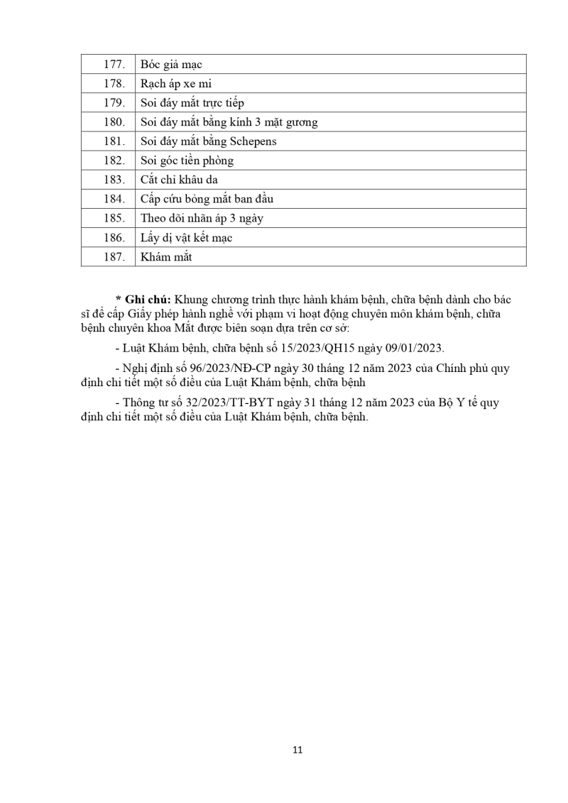 Nội dung thực hành khám bệnh, chữa bệnh đối với bác sĩ cấp giấy phép hành nghề phạm vi hành nghề chuyên khoa Mắt 2026/03/05 03:56