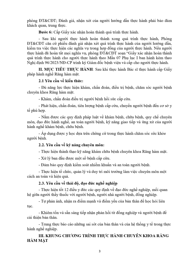Nội dung thực hành khám bệnh, chữa bệnh đối với bác sĩ cấp giấy phép hành nghề phạm vi hành nghề chuyên khoa RHM 2026/03/05 03:59