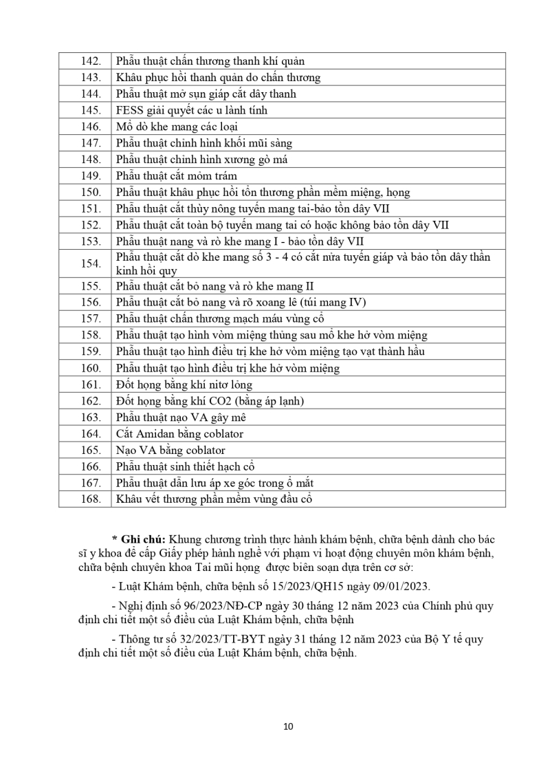 Nội dung thực hành khám bệnh, chữa bệnh đối với bác sĩ cấp giấy phép hành nghề phạm vi hành nghề chuyên khoa TMH 2026/03/05 03:53
