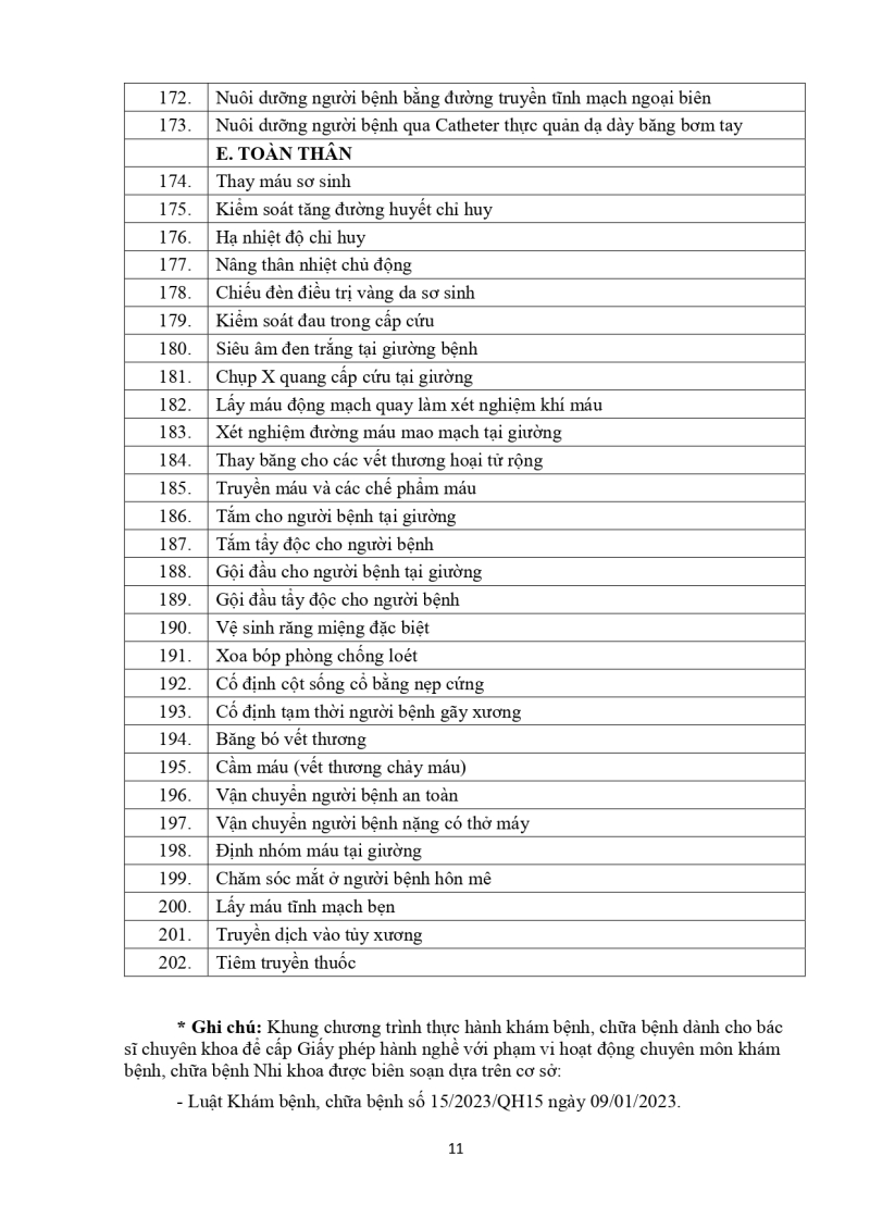 Nội dung thực hành khám bệnh, chữa bệnh đối với bác sĩ cấp giấy phép hành nghề phạm vi hành nghề nhi khoa 2026/03/05 03:17
