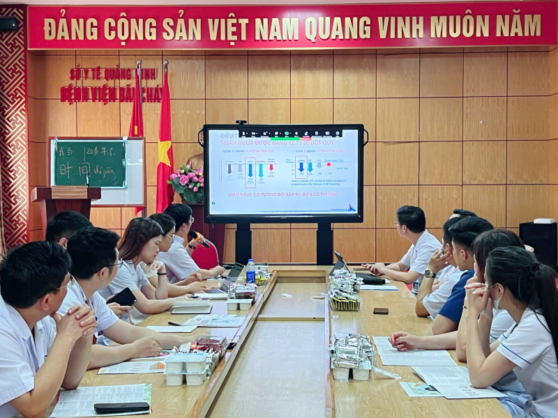 Buổi hội thảo nhằm cập nhập thông tin khoa học, giúp nâng cao kiến thức bệnh học và kinh nghiệm lâm sàng nâng cao trình độ chuyên môn trong lĩnh vực chẩn đoán và điều trị tăng huyết áp cho các cán bộ y, bác sĩ Bệnh viện Bãi Cháy.