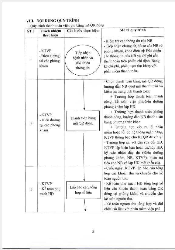 Quy trình thanh toán viện phí và thanh toán bằng mã QR động