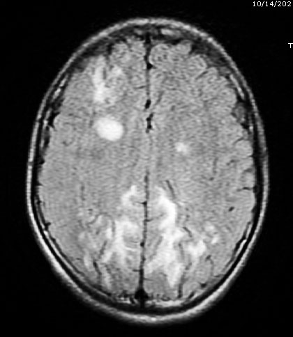 Hình ảnh chụp MRI sọ não có tổn thương viêm