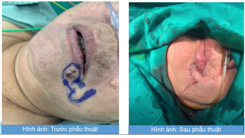 Trước tình trạng này, kíp phẫu thuật do Bác sĩ CKI Đoàn Huy Tuyền, Khoa Ung bướu 2, Bệnh viện Bãi Cháy cùng ê-kíp đã tiến hành cắt bỏ rộng khối ung thư da dể loại bỏ tổn thương ác tính và tạo hình bằng vạt tại chỗ nhằm mục đích che lấp tổn khuyết và đảm bảo hình thể cân đối và chức năng của khuôn mặt nhất là vùng môi phẫu thuật. Ca phẫu thuật diễn ra thuận lợi, đảm bảo an toàn và tính thẩm mỹ cao.