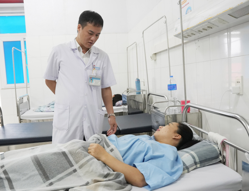 BSCKI Nguyễn Văn Mạnh – Phó Trưởng Khoa Phụ Sản, Bệnh viện Bãi Cháy thăm khám cho bệnh nhân sau phẫu thuật