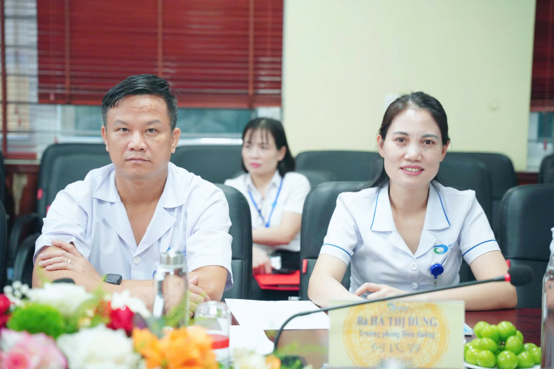 Tiếp đoàn về phía Bệnh viện Bãi Cháy có TTND.BSCKII Lê Ngọc Dũng – Giám đốc Bệnh viện Bãi Cháy, Ths.BS Trần Thanh Luận – Phó Giám đốc, BSCKI Hoàng Đình Thành – phó Giám đốc Bệnh viện, BSCKII Hoàng Văn Quyết – Phó Giám đốc Bệnh viện cùng lãnh đạo các phòng, khoa chức năng.