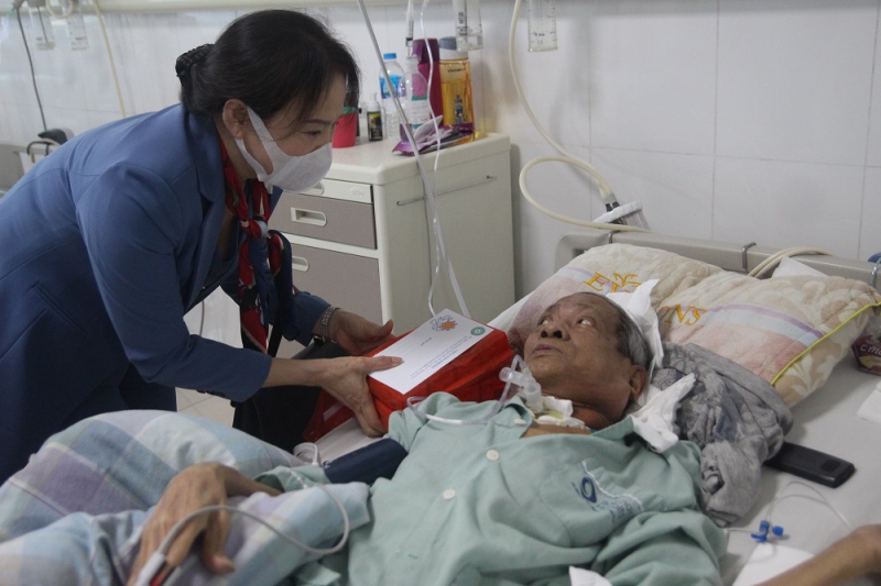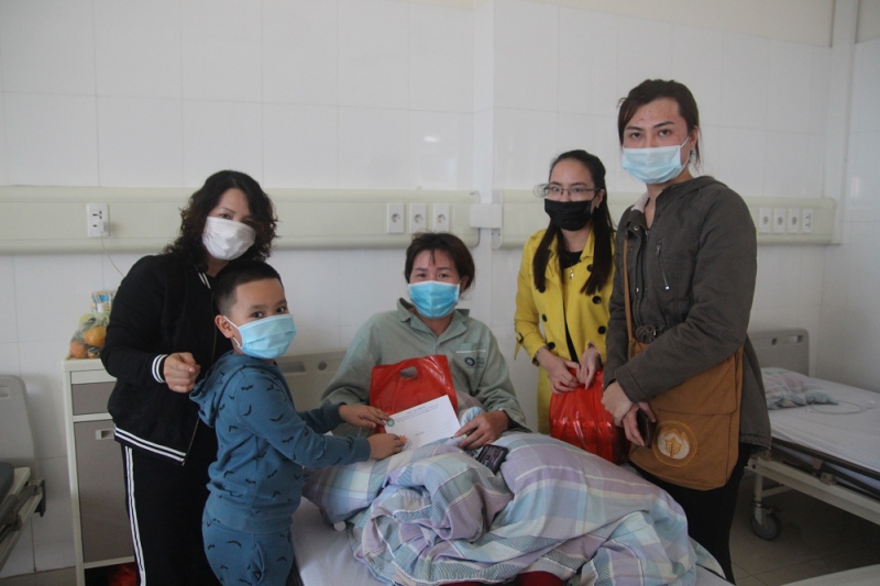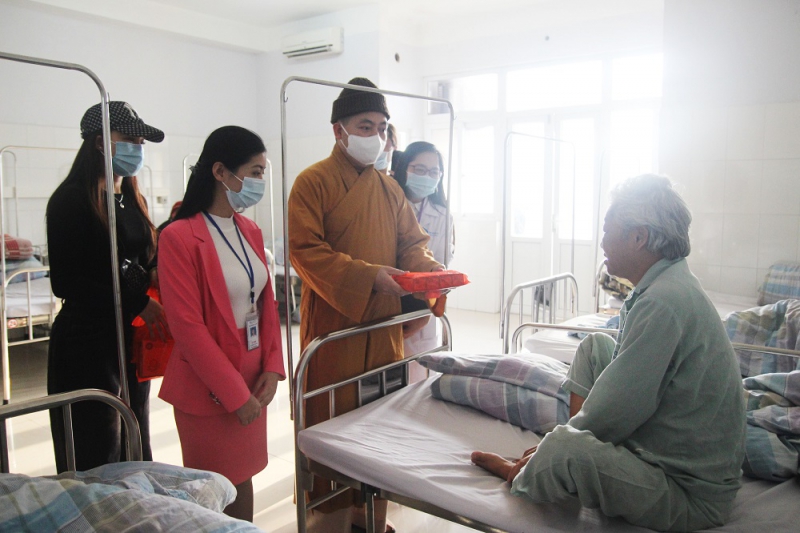 Nối dài tinh thần lá lành đùm lá rách, sẻ chia khó khăn, nỗi đau bệnh tật cùng người bệnh ung thư, với tấm lòng “từ bi, hành thiện”, Đoàn Phật tử đã đến giường bệnh thăm hỏi và phát 120 suất quà trị giá 100 nghìn đồng/ suất cùng hiện vật - sữa cho các bệnh nhân ung thư, bệnh nhân mắc bệnh lý thận đang nằm điều trị tại Bệnh viện Bãi Cháy.