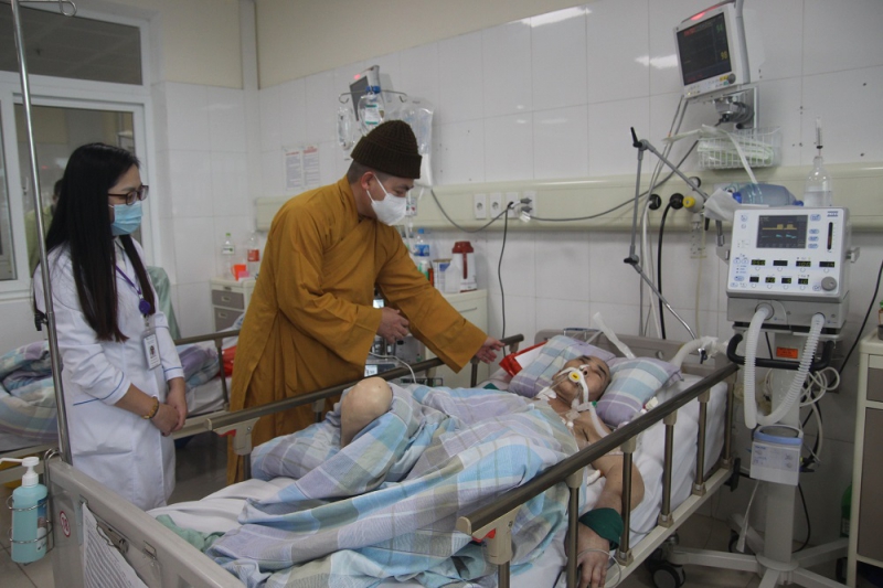 Sư thầy Thích Thanh Văn – Trụ trì Chùa Vân Phong (Quảng Ninh) cùng Tổ công tác xã hội Bệnh viện Bãi Cháy tặng quà bệnh nhân ung thư