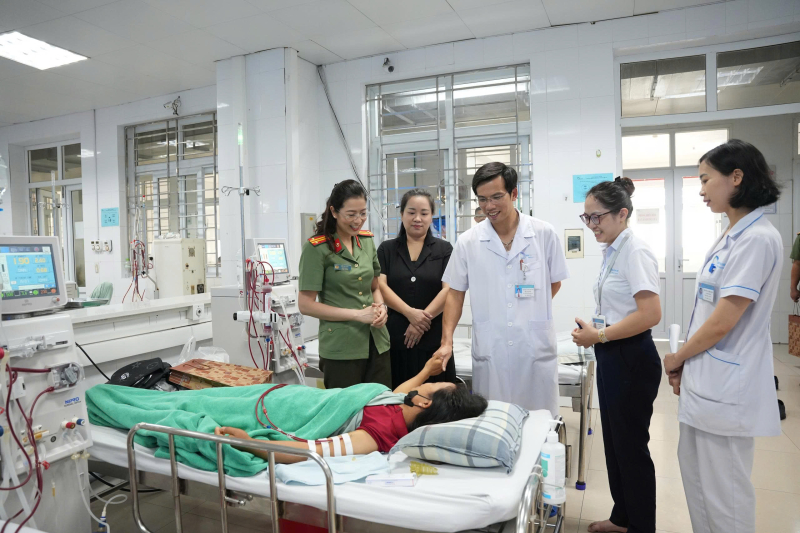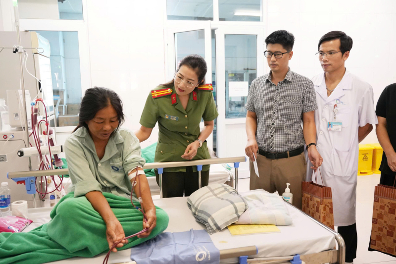 BSCKII Hoàng Văn Quyết – Phó Giám đốc Bệnh viện Bãi Cháy, BSCKII Hoàng Minh Tuân – Trưởng phòng Quản lý chất lượng cùng các cán bộ Tổ công tác xã hội đã cùng các cán bộ công an Phòng An ninh chính trị nội bộ (Công an tỉnh Quảng Ninh), đại diện các doanh nghiệp hảo tâm đến thăm hỏi, tặng quà cho người bệnh tại Khoa Thận lọc máu và Khoa Hồi sức tích cực Ung bướu.