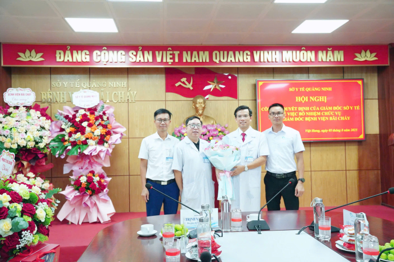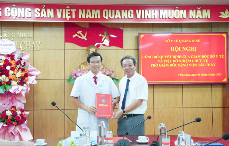 Sáng 05/8/2025, tại Bệnh viện Bãi Cháy, đồng chí Trịnh Văn Mạnh – Phó Giám đốc Sở Y tế Quảng Ninh đã trao Quyết định bổ nhiệm có thời hạn cho Bs CKII Hoàng Văn Quyết,Trưởng Phòng TCCB, phụ trách Khoa Ung Bướu 2 - Bệnh viện Bãi Cháy giữ chức vụ Phó Giám đốc Bệnh viện Bãi Cháy.