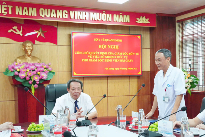 Tại buổi lễ đồng chí Nguyễn Xuân Tình, Chánh văn phòng Sở Y tế thừa ủy quyền của Giám đốc Sở Y tế công bố Quyết định số 1538/QĐ-SYT ngày 01/8/2025 của Giám đốc Sở Y tế về việc bổ nhiệm ông Hoàng Văn Quyết – trình độ chuyên môn Bác sĩ CKII, Trưởng Phòng Tổ chức cán bộ giữ chức vụ Phó Giám đốc Bệnh viện Bãi Cháy kể từ ngày 01/8/2025.