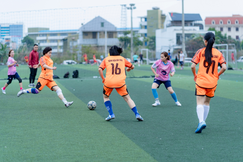 Trận đấu diễn ra với tinh thần giao lưu, đoàn kết và rèn luyện sức khỏe. Các cầu thủ nữ của hai đơn vị đã cống hiến nhiều pha bóng đẹp mắt, thể hiện sự nhanh nhẹn, khéo léo và tinh thần thi đấu nhiệt huyết. Dù là trận đấu giao hữu, các đội vẫn thi đấu với sự tập trung và quyết tâm cao, mang đến nhiều khoảnh khắc sôi động cho khán giả trên sân.