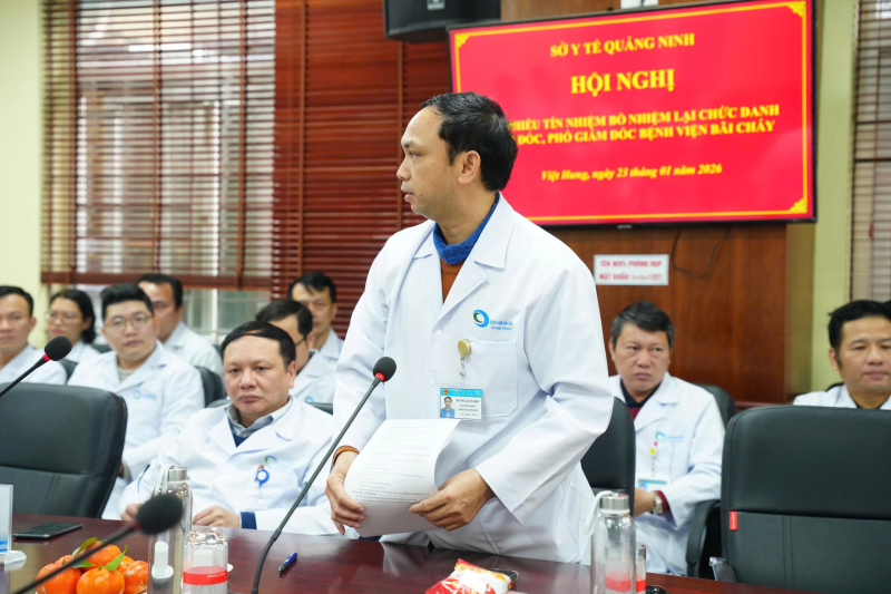 Chiều ngày 23/01/2026, Bệnh viện Bãi Cháy tổ chức Hội nghị lấy phiếu tín nhiệm trong quy trình bổ nhiệm lại chức danh Giám đốc và Phó Giám đốc Bệnh viện Bãi Cháy theo quy định hiện hành. Hội nghị do đồng chí Bùi Mạnh Hùng – Quyền Giám đốc Sở Y tế Quảng Ninh chủ trì.