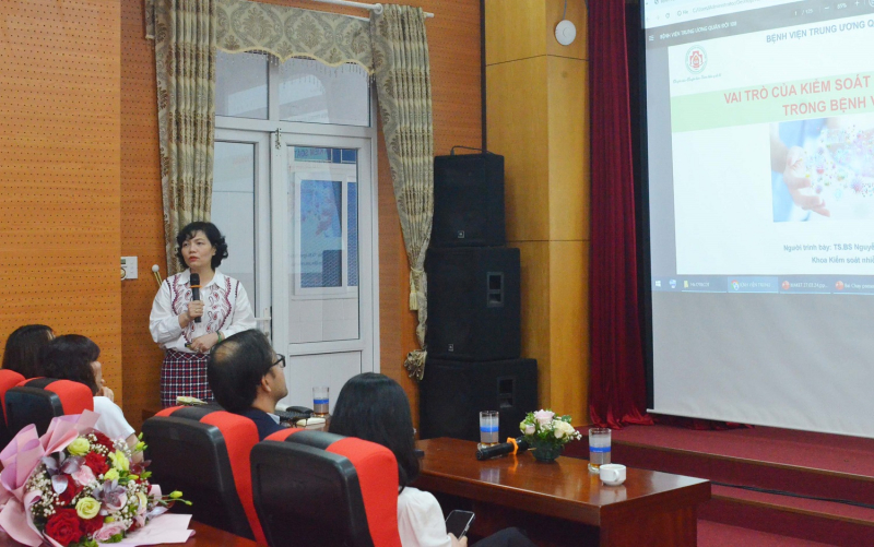 TS.BS Nguyễn Thị Kim Phượng – Chủ nhiệm Khoa Kiểm soát nhiễm khuẩn Bệnh viện Trung ương Quân đội 108 thuyết giảng tại hội thảo