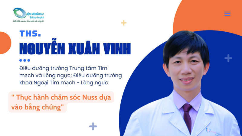 - Thực hành chăm sóc Nuss dựa vào bằng chứng và Lập kế hoạch chăm sóc sau mổ Nuss theo chuẩn NANDA-NIC-NOC do ThS.ĐD. Nguyễn Xuân Vinh, Điều dưỡng trưởng khoa Ngoại Tim mạch và Lồng ngực, Trung tâm Tim mạch và Lồng ngực, Bệnh viện Hữu nghị Việt Đức, chia sẻ.