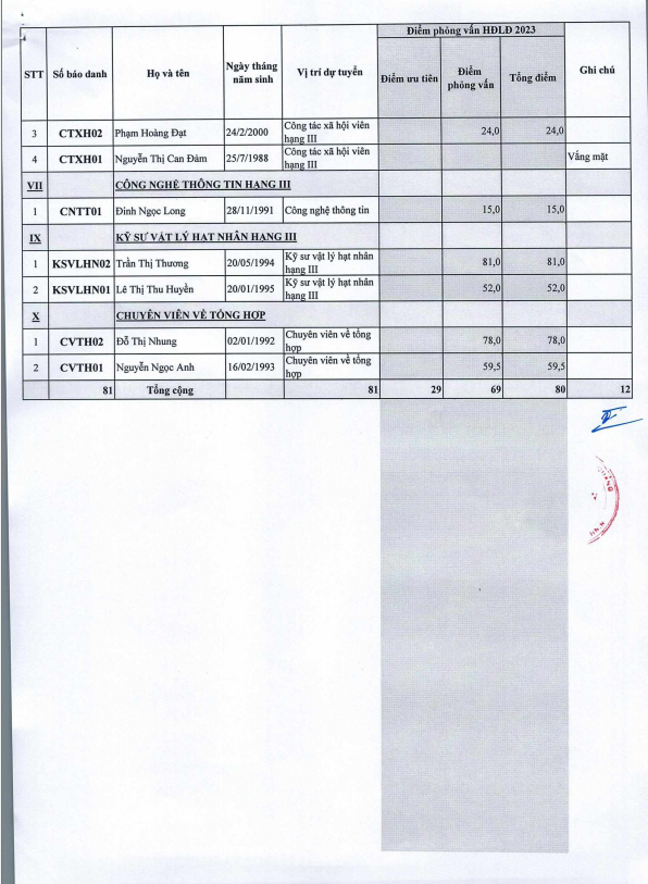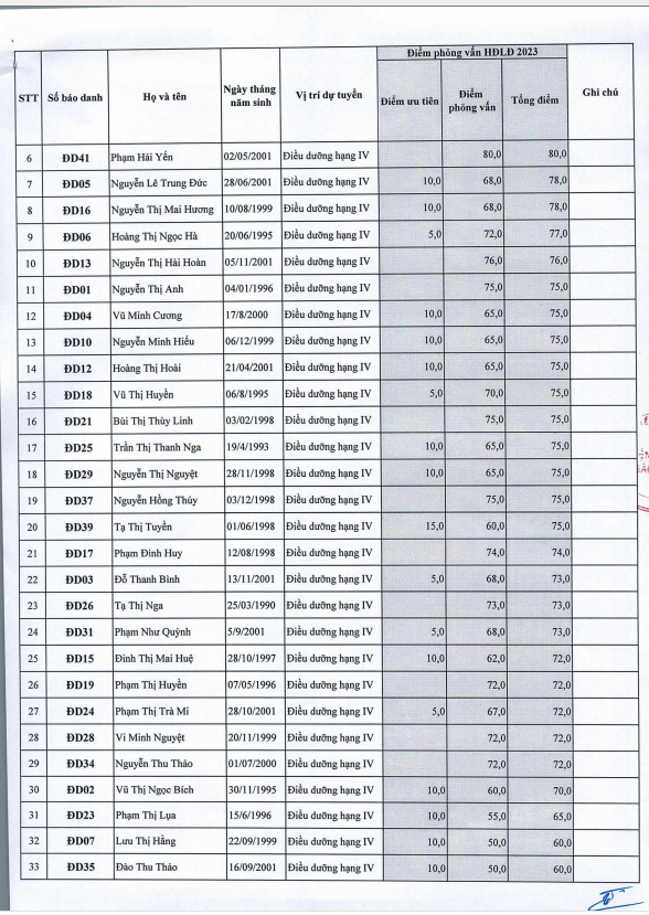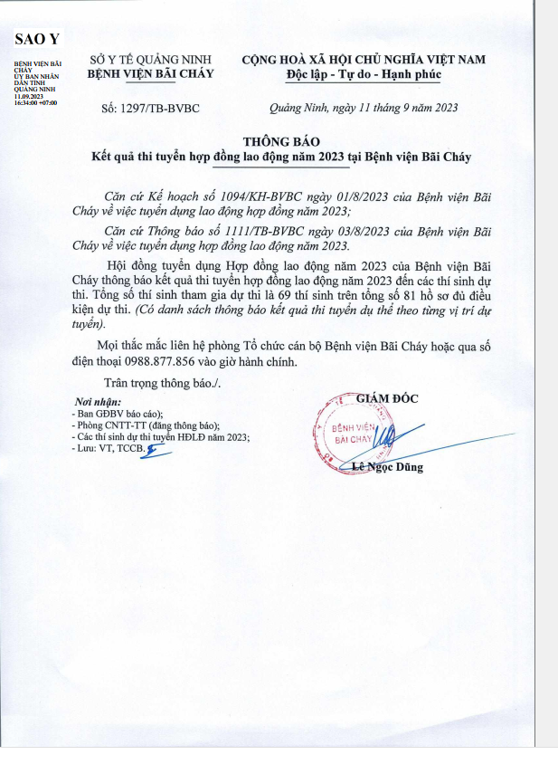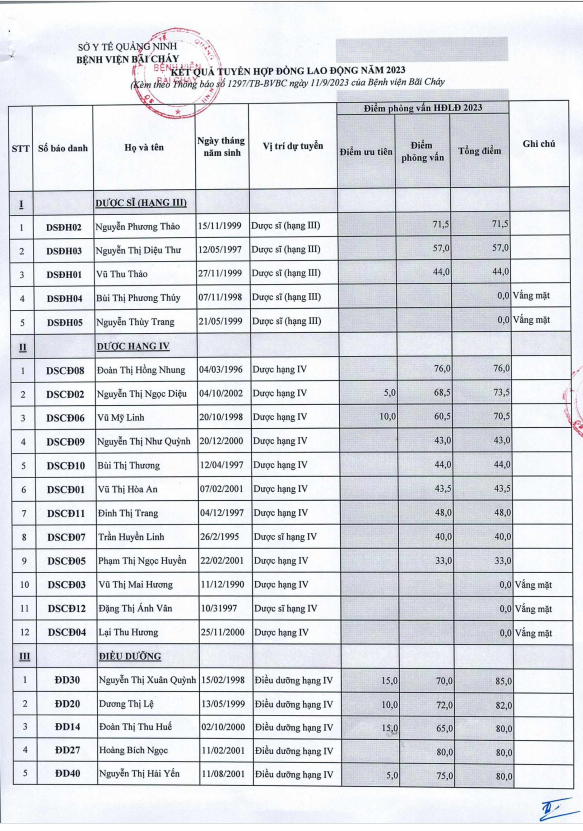 Kết quả kỳ thi tuyển hợp đồng lao động năm 2023 của Bệnh viện Bãi Cháy