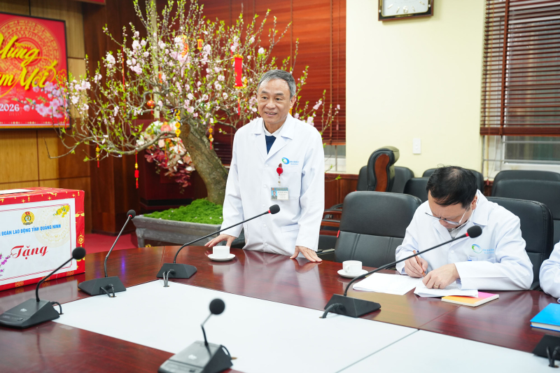 Đồng chí Hoàng Thị Hồng Phấn – Phó Chủ tịch Liên đoàn Lao động tỉnh đã biểu dương tinh thần cống hiến của tập thể đội ngũ thầy thuốc, CBCNV cùng những thành quả y tế bệnh viện gặt hái được trong vừa qua đã góp phần nâng cao chất lượng dịch vụ y tế tỉnh Quảng Ninh. Đồng chí Phó Chủ tịch Liên đoàn Lao động tỉnh bày tỏ sự chia sẻ đối với những khó khăn, áp lực đặc thù của ngành y, nhất là trong các dịp cao điểm và ngày Tết, đánh giá cao tinh thần trách nhiệm, sự tận tâm của các cán bộ y tế phục vụ nhân dân vui xuân đón Tết. Đồng thời khẳng định tổ chức công đoàn sẽ tiếp tục quan tâm, chăm lo đời sống vật chất, tinh thần cho người lao động ngành y tế, tạo động lực để cán bộ, nhân viên y tế yên tâm công tác, gắn bó lâu dài với nghề.