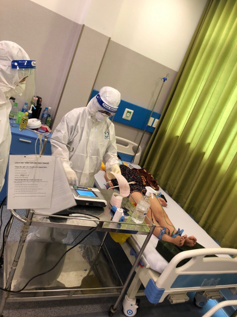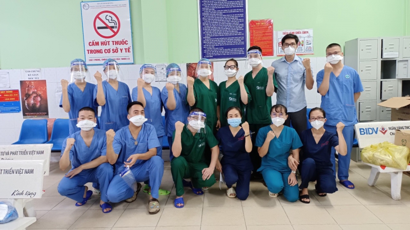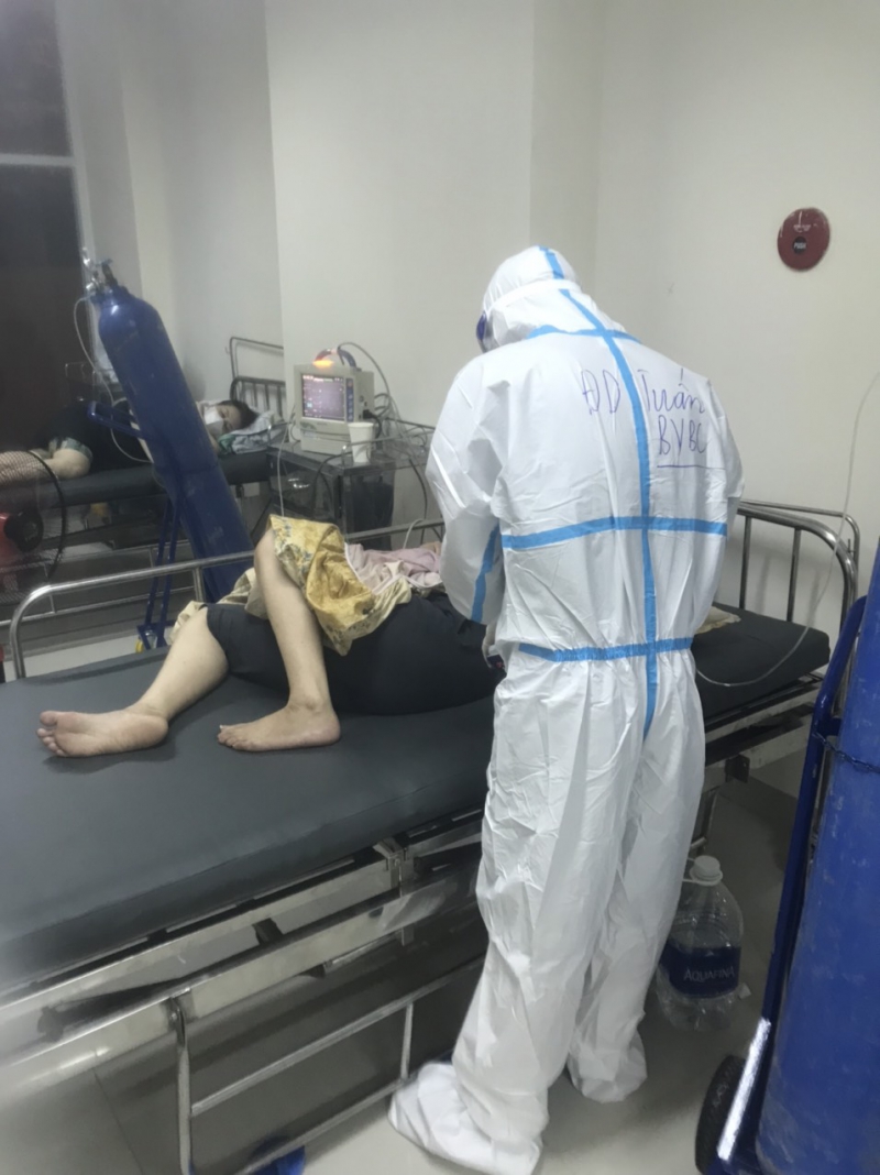 Tại Bình Dương, Đoàn thầy thuốc tình nguyện Quảng Ninh thực hiện nhiệm vụ chăm sóc và điều trị bệnh nhân Covid-19 tại Trung tâm y tế TP Thuận An. Trong đó có nhiều bệnh nhân bị suy hô hấp phải thở oxy mask và oxy dòng cao. Dù môi trường làm việc rất khắc nghiệt, nguy hiểm nhưng mỗi chiến sĩ của Bệnh viện Bãi Cháy luôn nỗ lực từng giây phút để giành sự sống cho người bệnh.