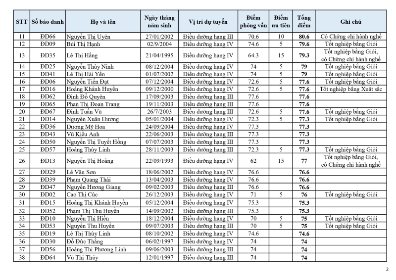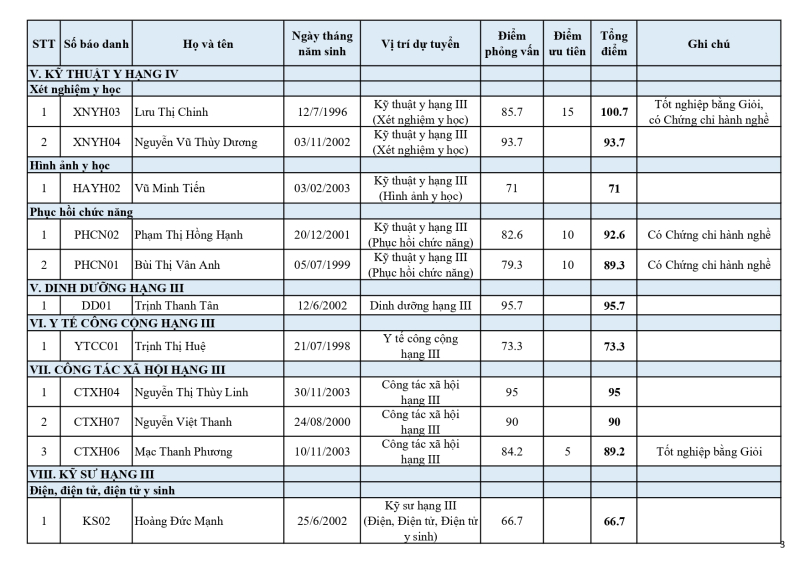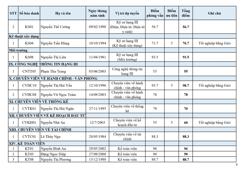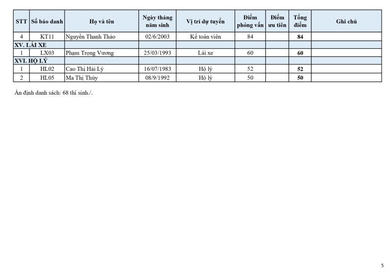 Thông báo kết quả trúng tuyển kỳ thi tuyển dụng lao động hợp đồng năm 2025