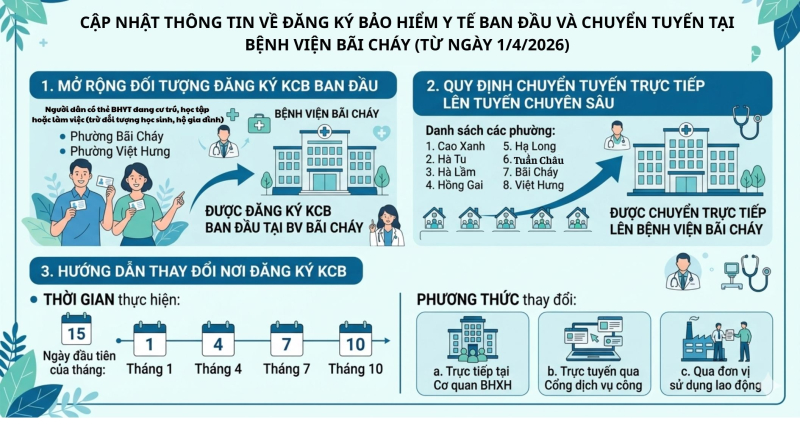 Mở rộng đối tượng đăng ký KCB ban đầu tại Bệnh viện Bãi Cháy (Áp dụng từ 01/04/2026)