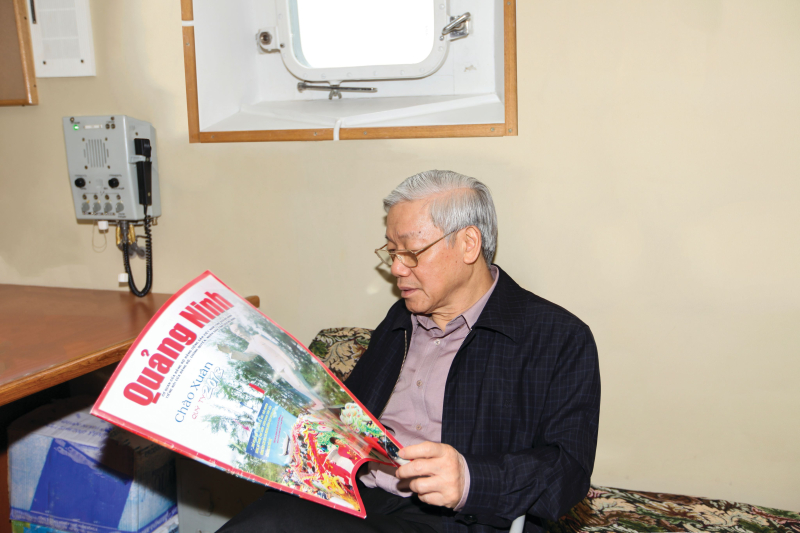 Tổng Bí thư Nguyễn Phú Trọng đọc Báo Quảng Ninh.