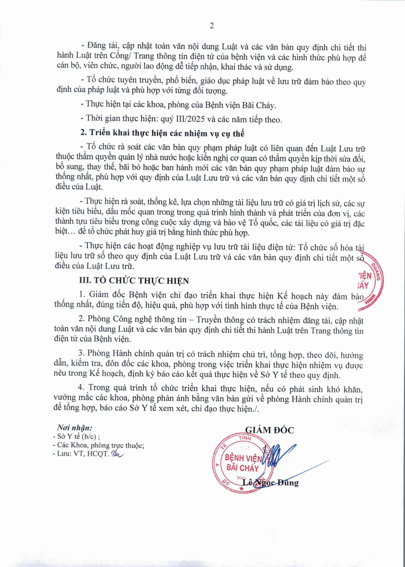 Kế hoạch 1529 của BVBC về triển khai luật lưu trữ và các văn bản quy định chi tiết thi hành luật lưu trữ 2025/08/27 02:22