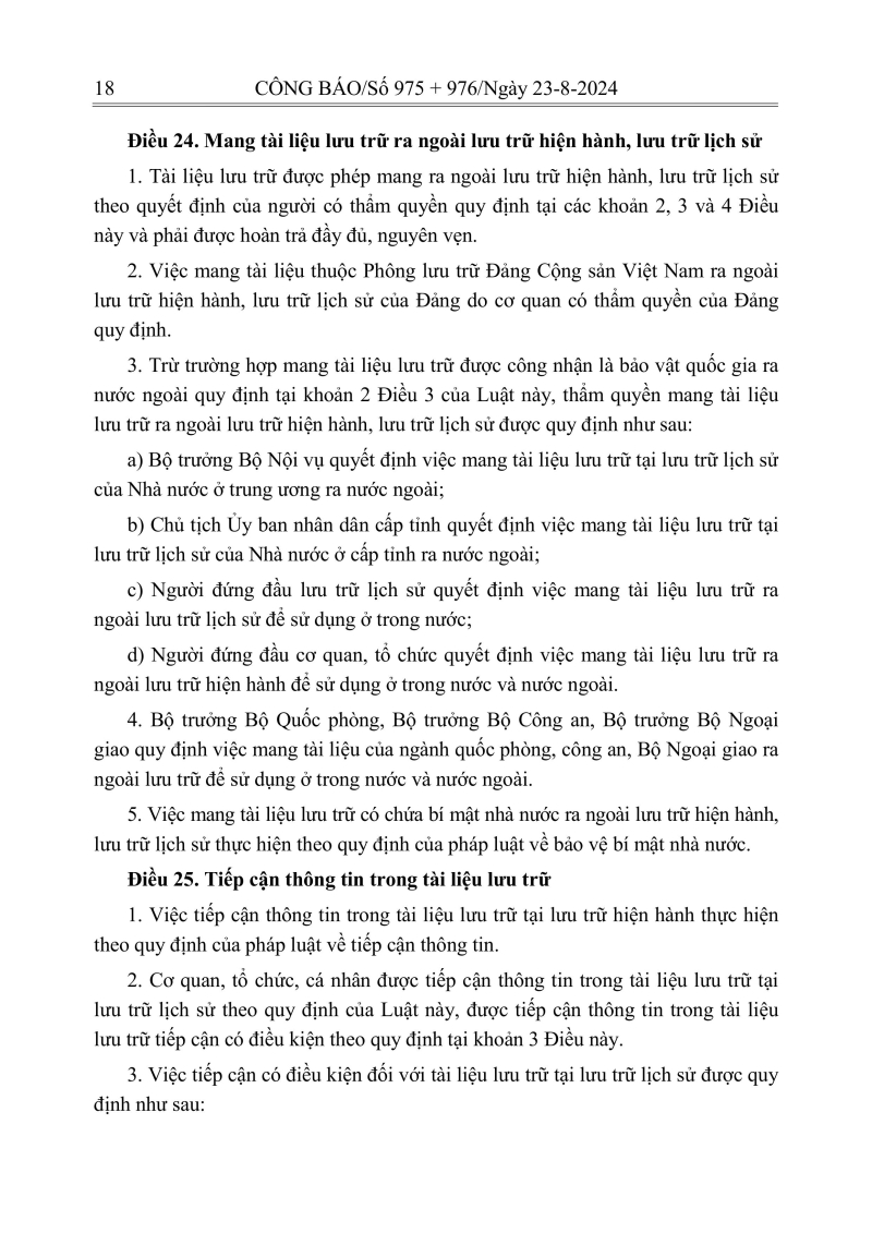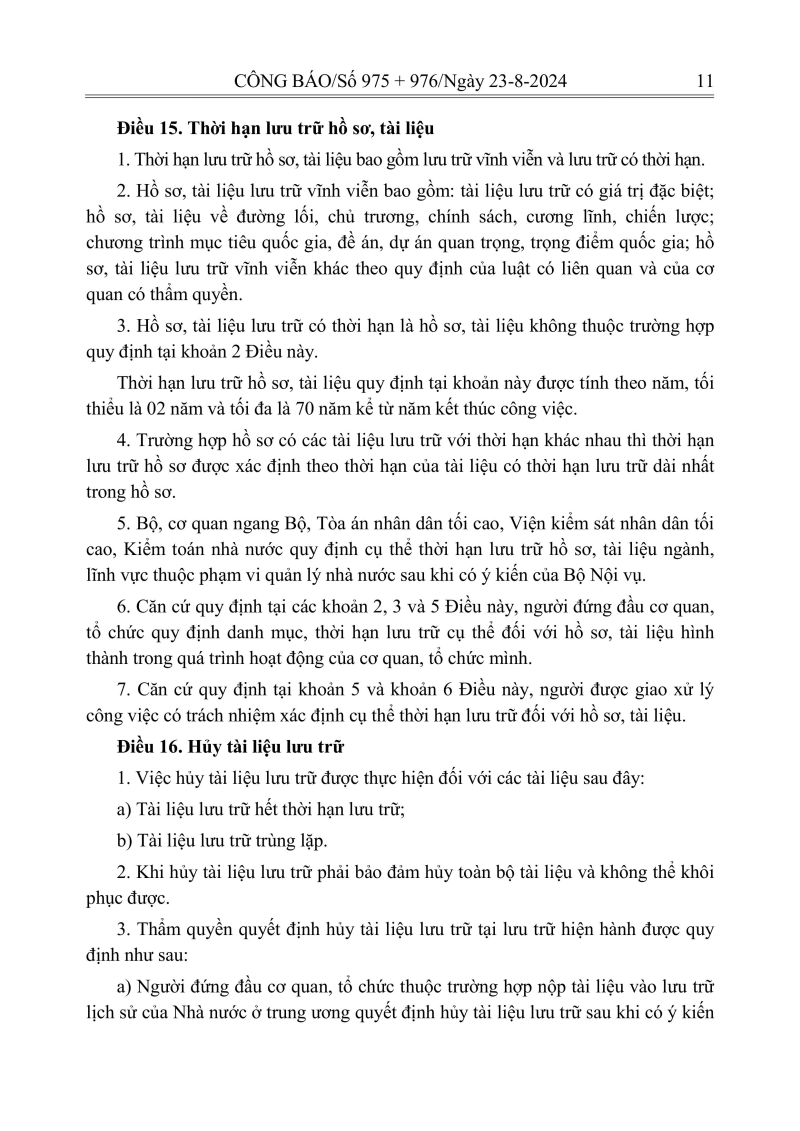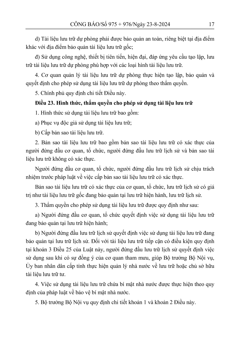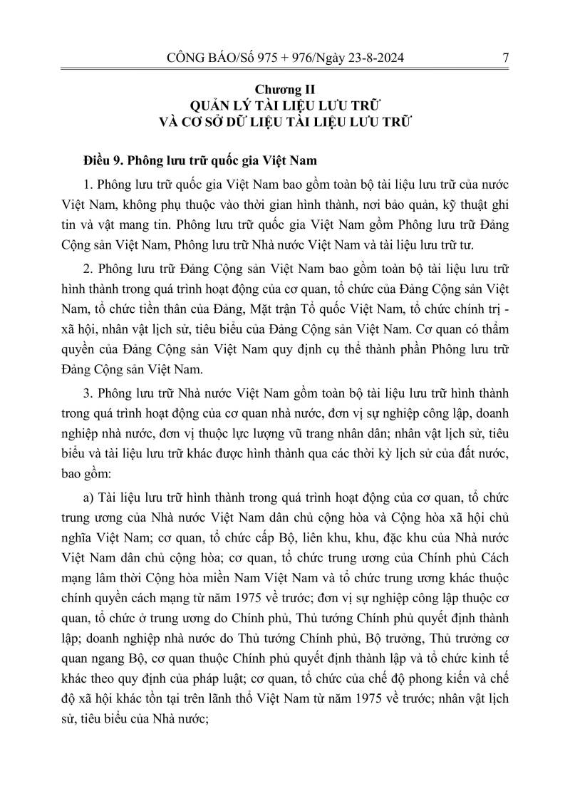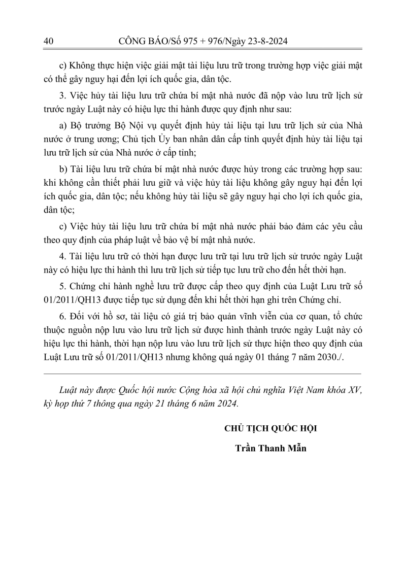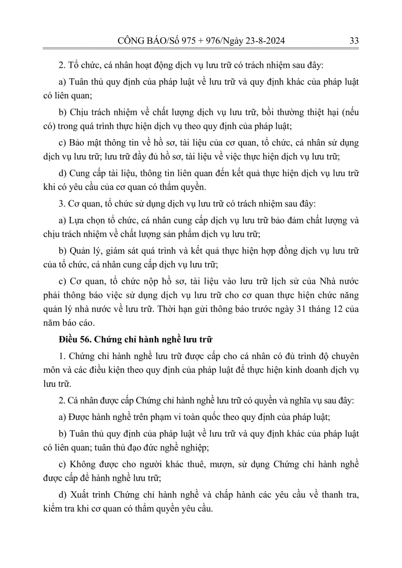 Luật lưu trữ: CV số 33 năm 2024 QH15