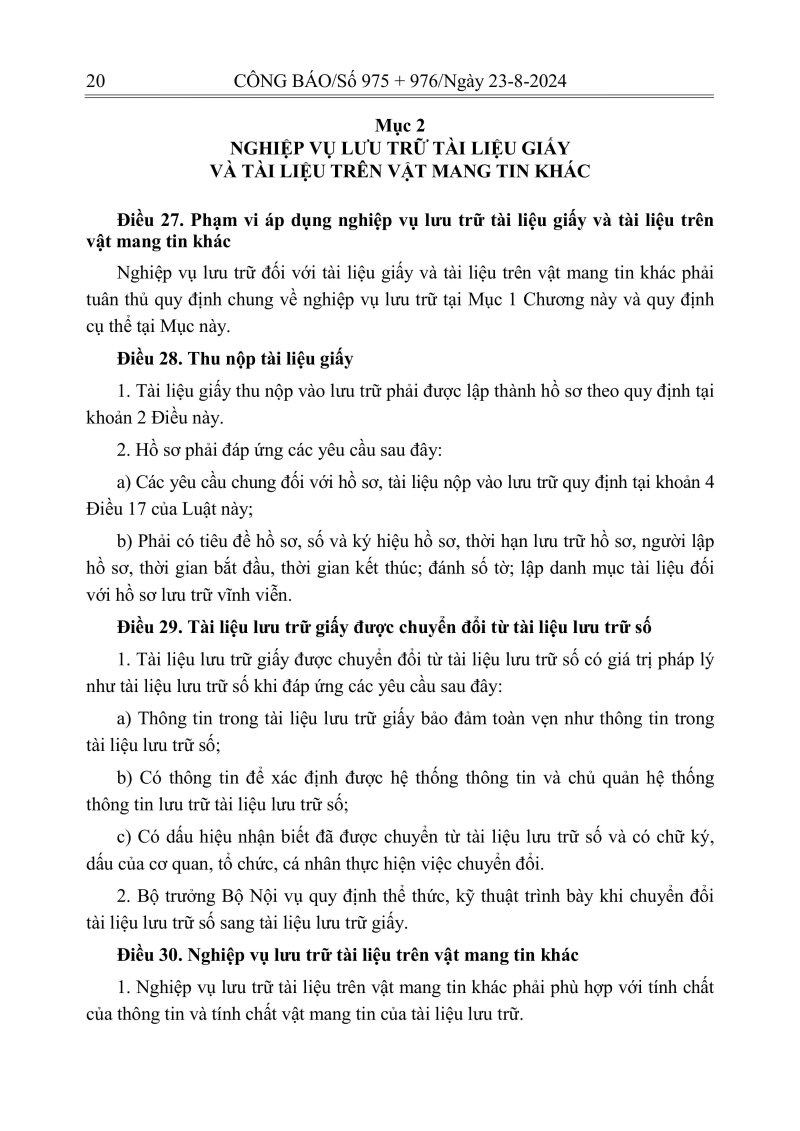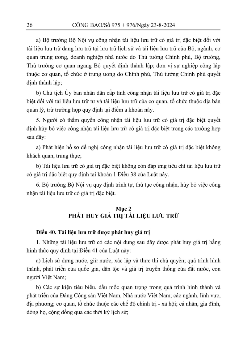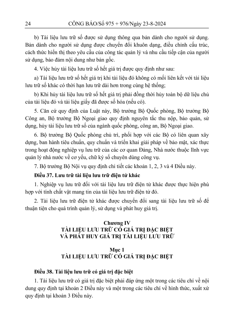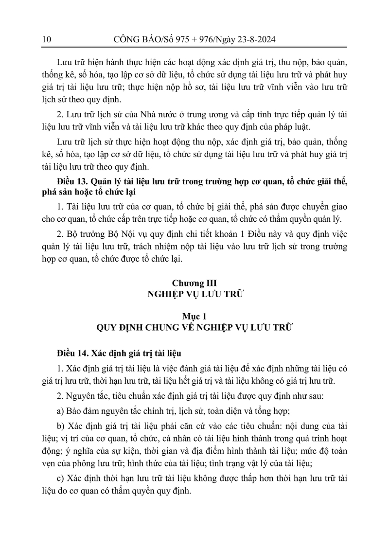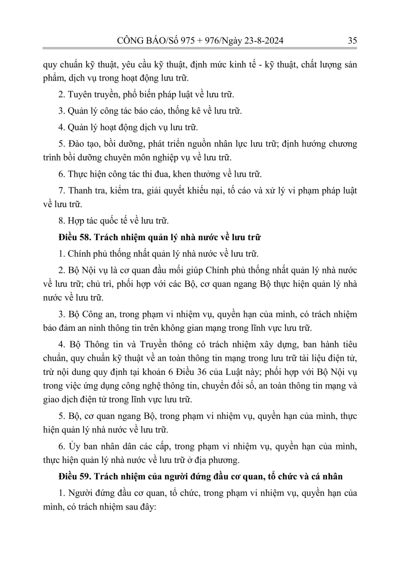 Luật lưu trữ: CV số 33 năm 2024 QH15