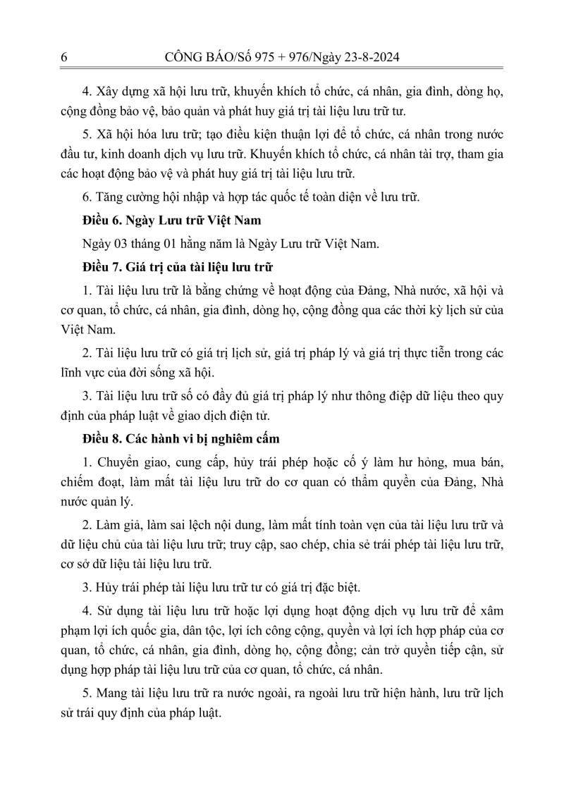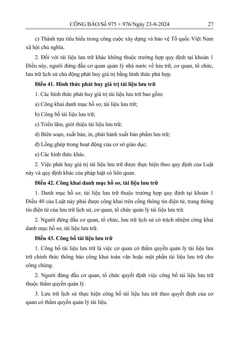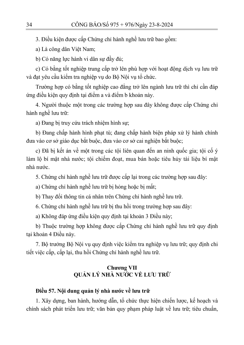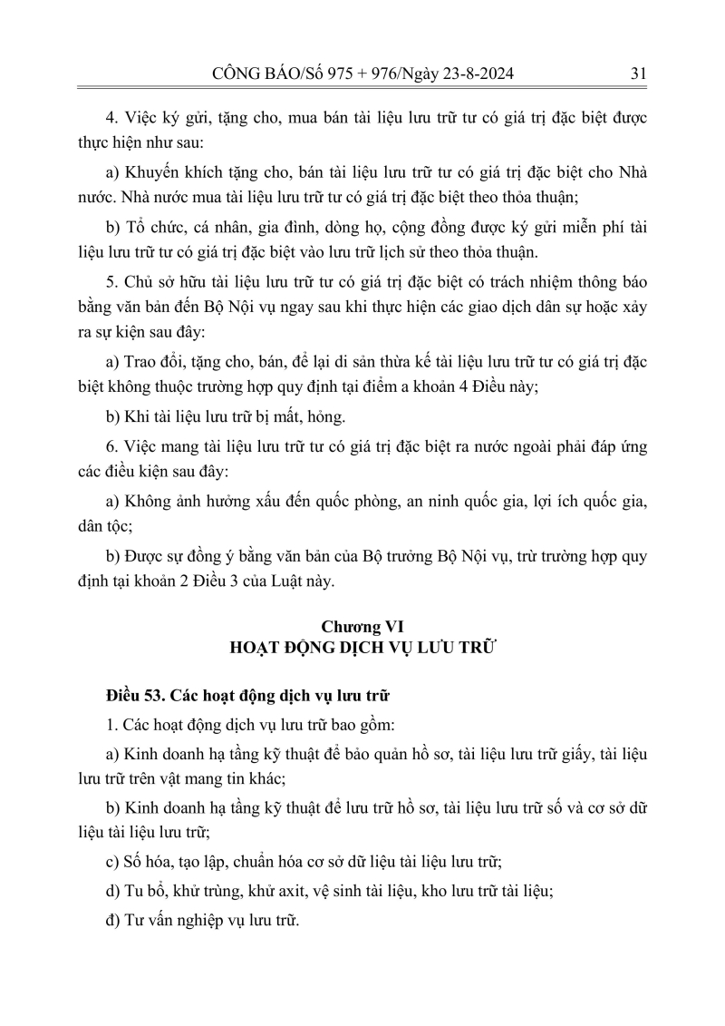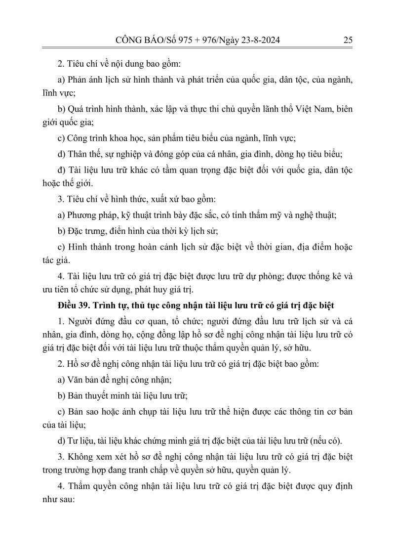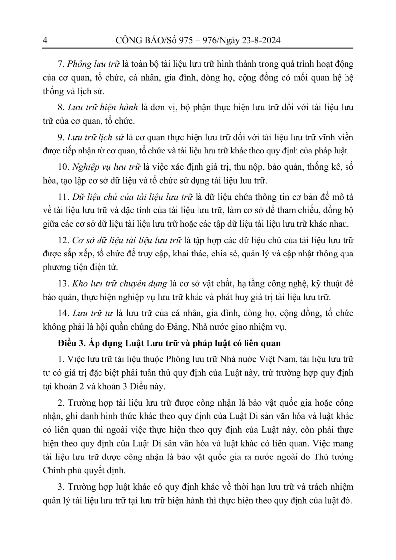 Luật lưu trữ: CV số 33 năm 2024 QH15