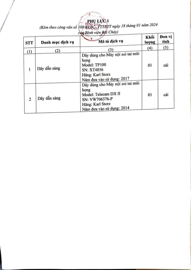 Thông báo số 108 về nhu cầu sửa chữa dây dẫn sáng của các máy nội soi Tai mũi họng 2024/01/22 00:44 Thông báo số 108 về nhu cầu sửa chữa dây dẫn sáng của các máy nội soi Tai mũi họng