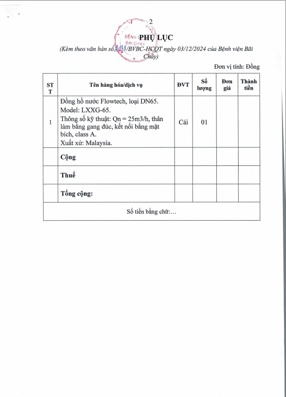 Thông báo số 2138 về nhu cầu mua đồng hồ đo lưu lượng nước thải