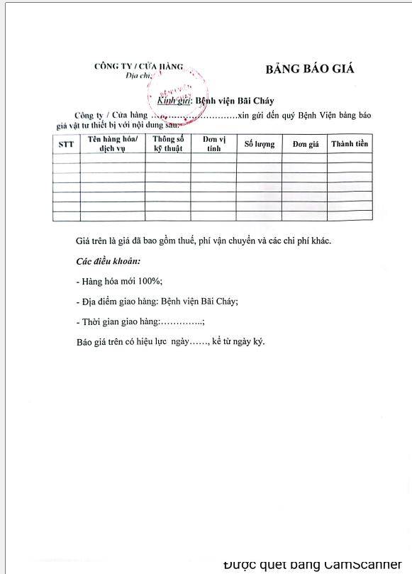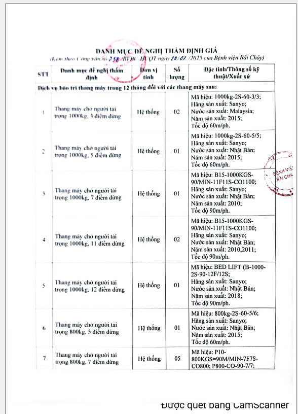 Thông báo số 298 về nhu cầu thẩm định giá bảo trì thang máy năm 2025 của Bệnh viện Bãi Cháy 2025/02/20 03:43