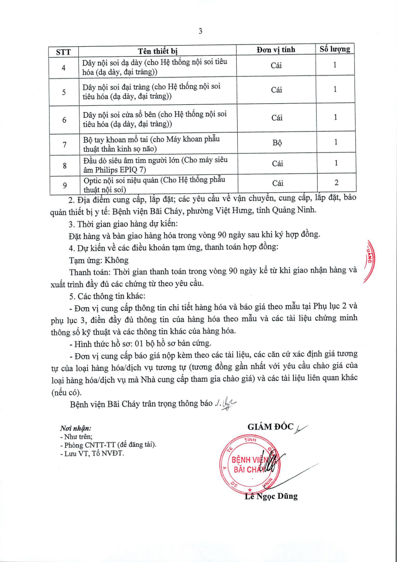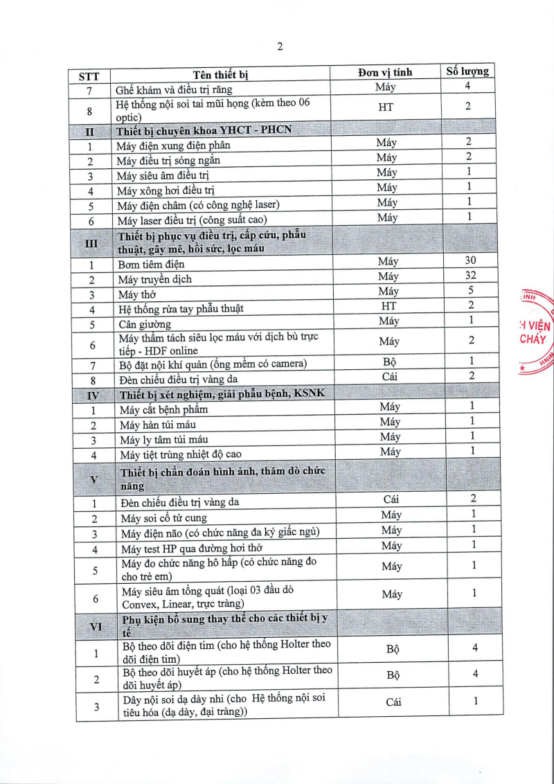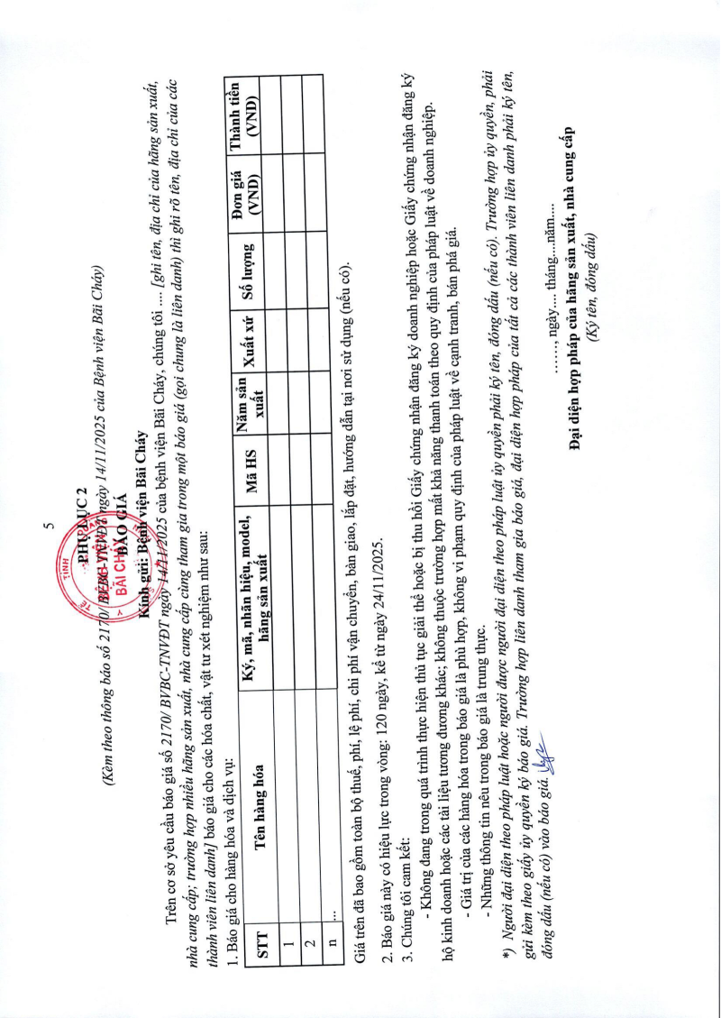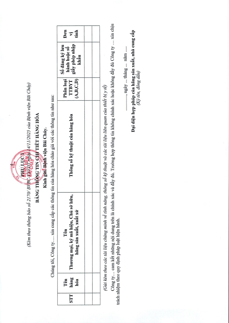 Số 2170/BVBC-NVĐT V/v thông báo nhu cầu mua sắm trang thiết bị Y tế từ nguồn phát triển hoạt động sự nghiệp năm 2025