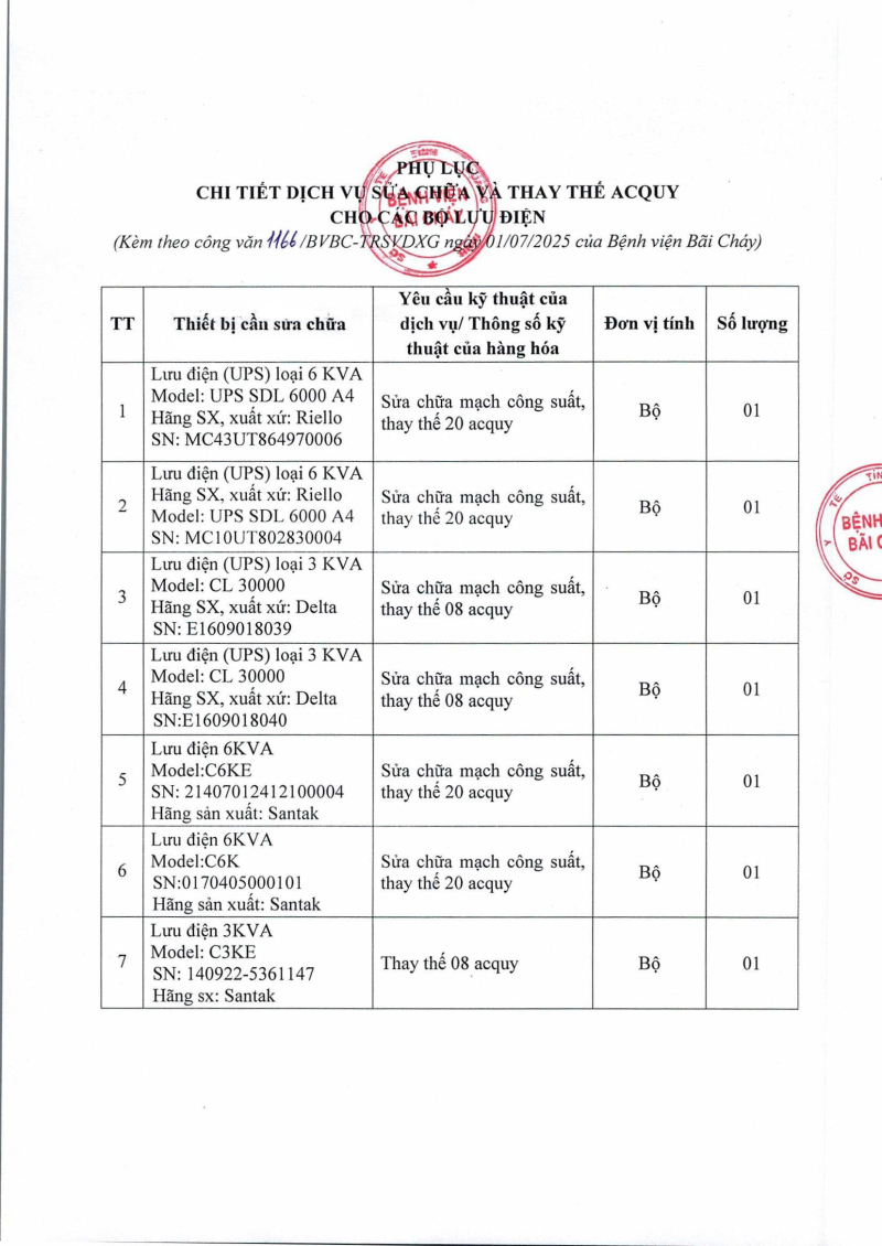 Thông báo 1166 nhu cầu sửa chữa và thay thế acquy cho các bộ lưu điện 2025/07/01 06:31 Thông báo 1166 nhu cầu sửa chữa và thay thế acquy cho các bộ lưu điện