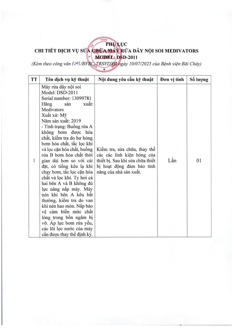 Thông báo 1243 nhu cầu sửa chữa máy rửa dây nội soi 2025/07/10 09:35 Thông báo 1243 nhu cầu sửa chữa máy rửa dây nội soi