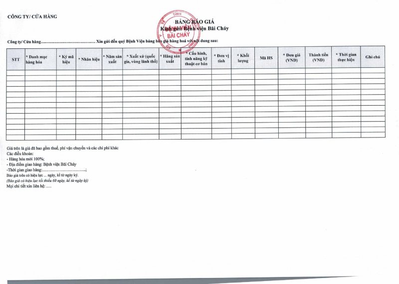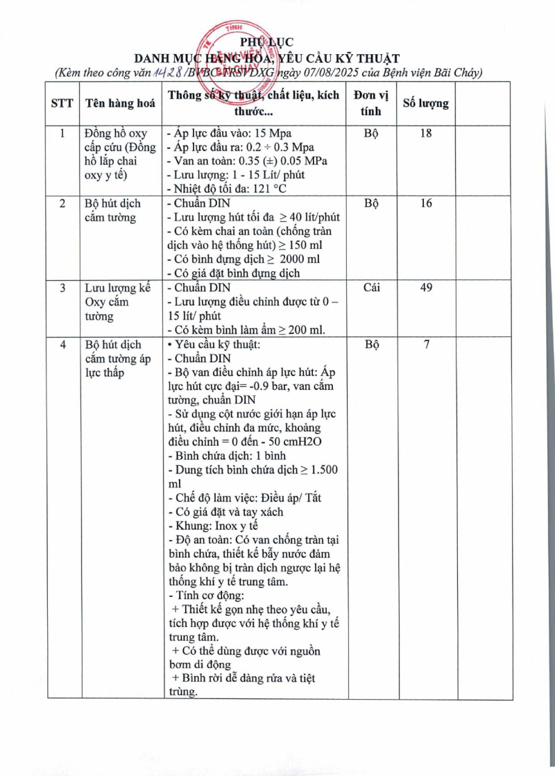 Thông báo 1428 nhu cầu mua sắm vật tư sử dụng cho hệ thống khí y tế 2025/08/07 07:34 Thông báo 1428 nhu cầu mua sắm vật tư sử dụng cho hệ thống khí y tế