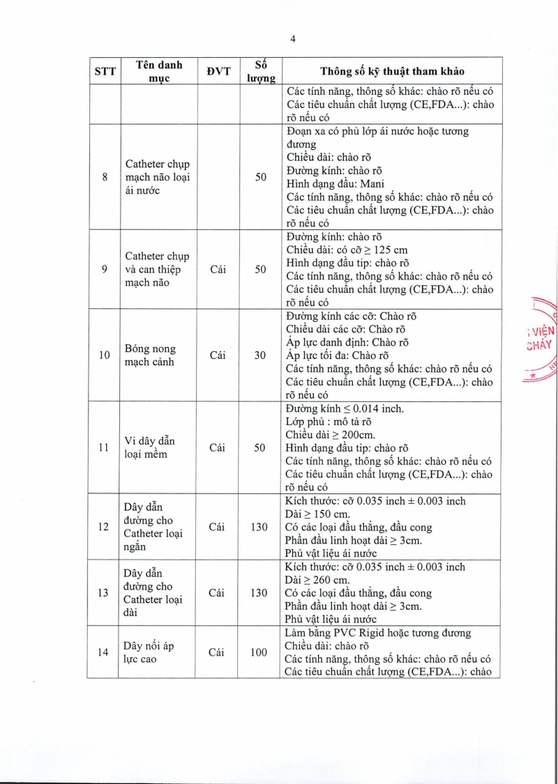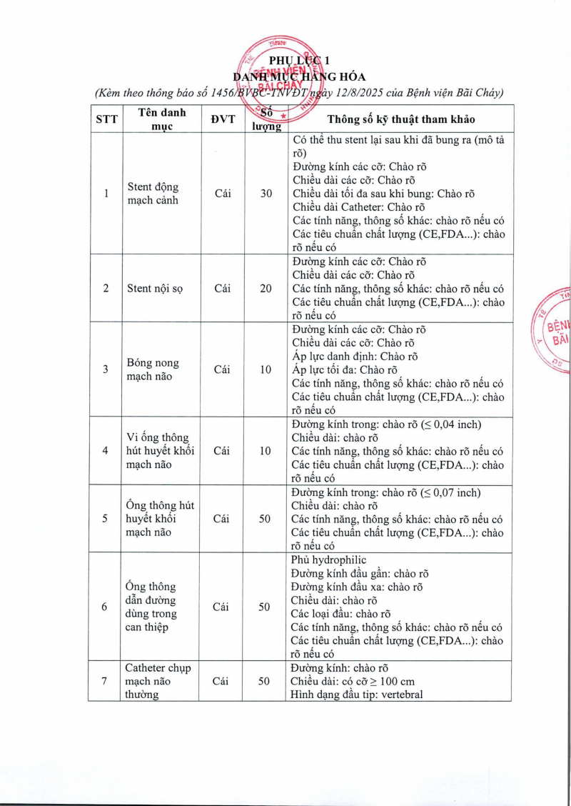 Thông báo 1456 về nhu cầu mua sắm vật tư can thiệp mạch não năm 2025, 2026