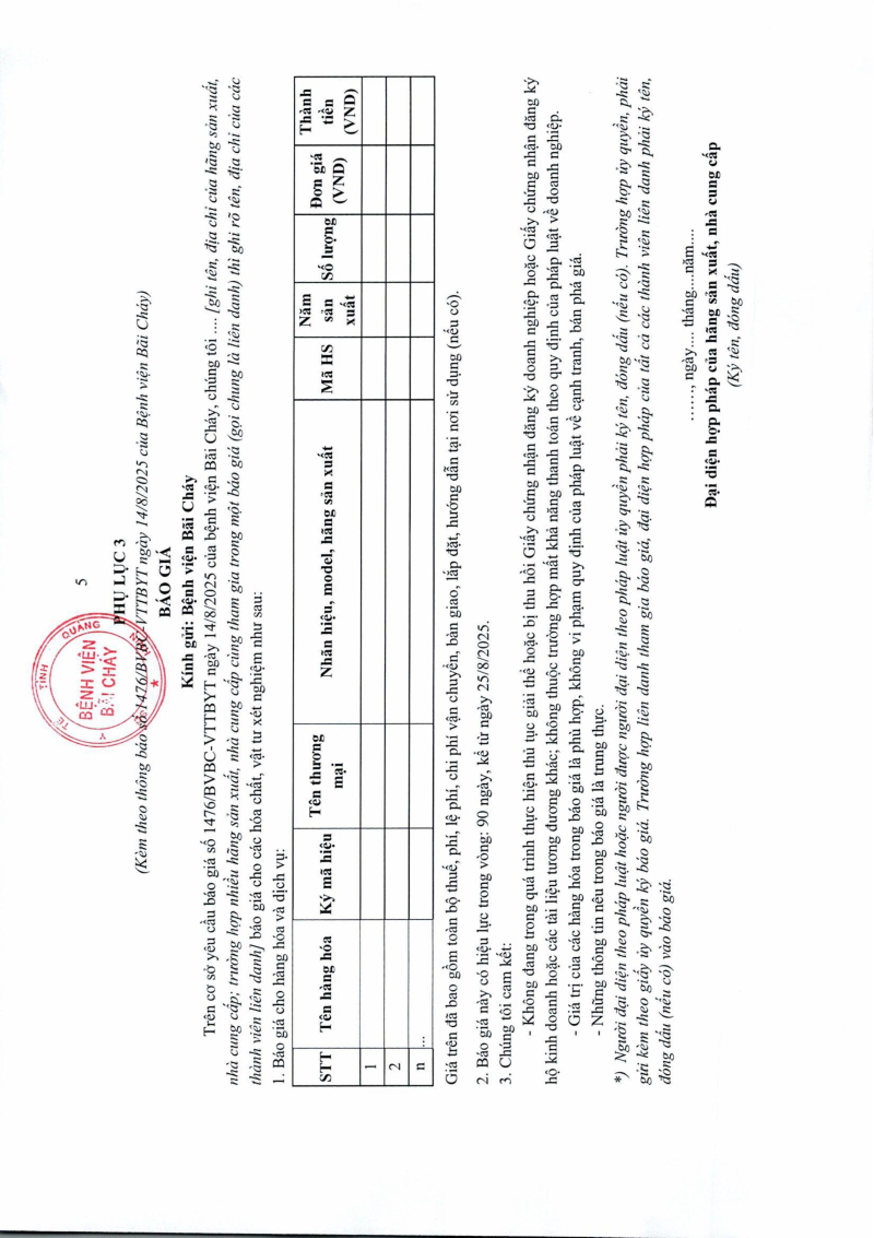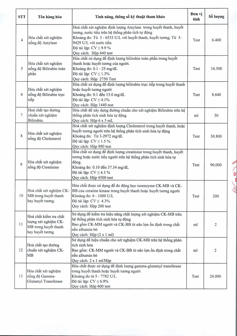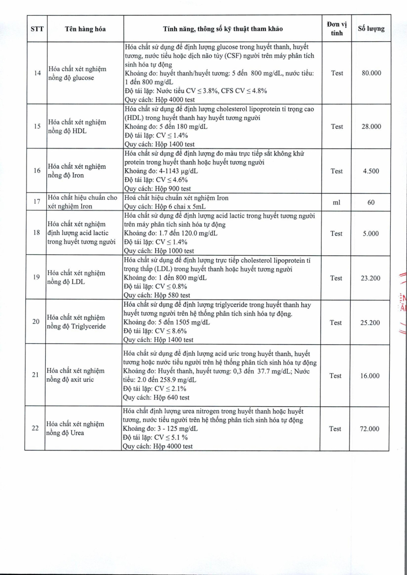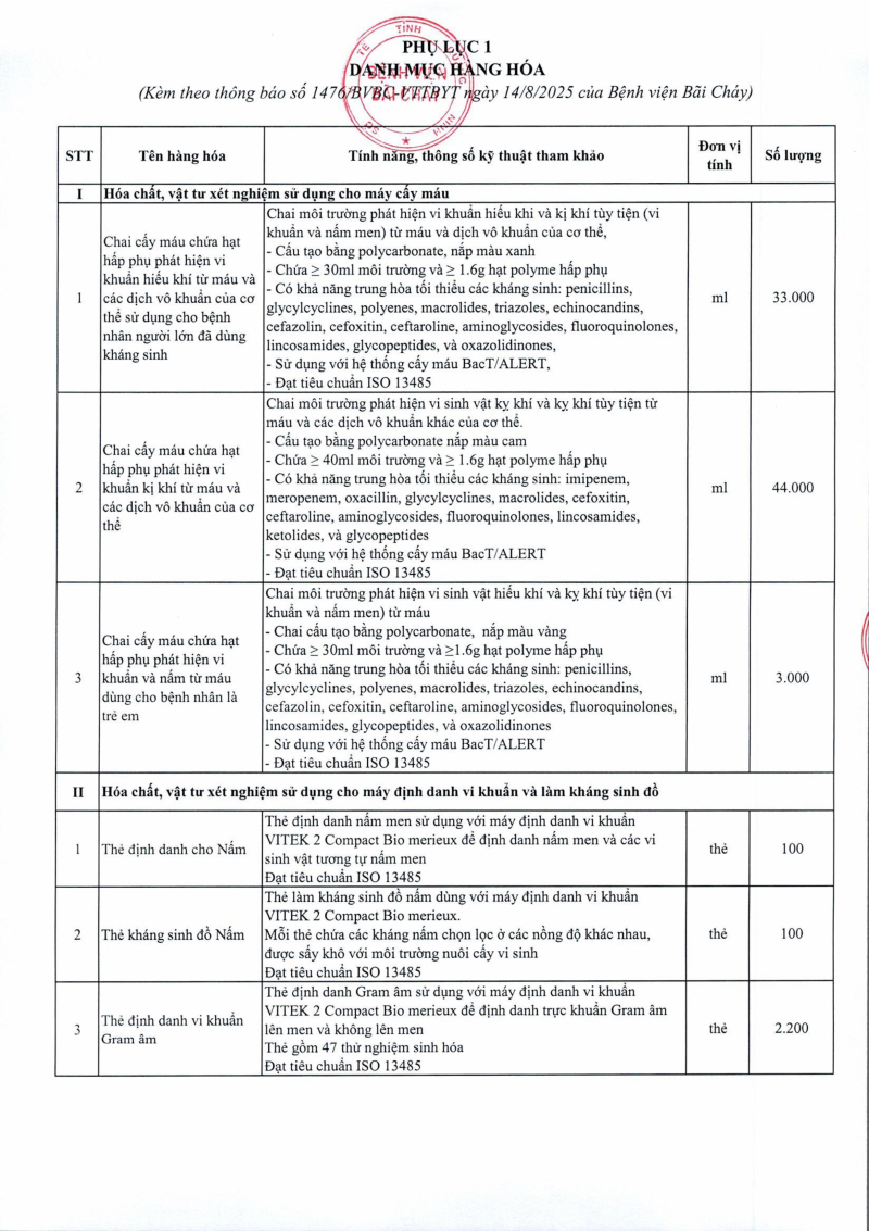 Thông báo 1476 về nhu cầu mua sắm hóa chất, vật tư xét nghiệm phục vụ công tác chuyên môn của bệnh viện năm 2025,2026 đợt 4 2025/08/14 08:07