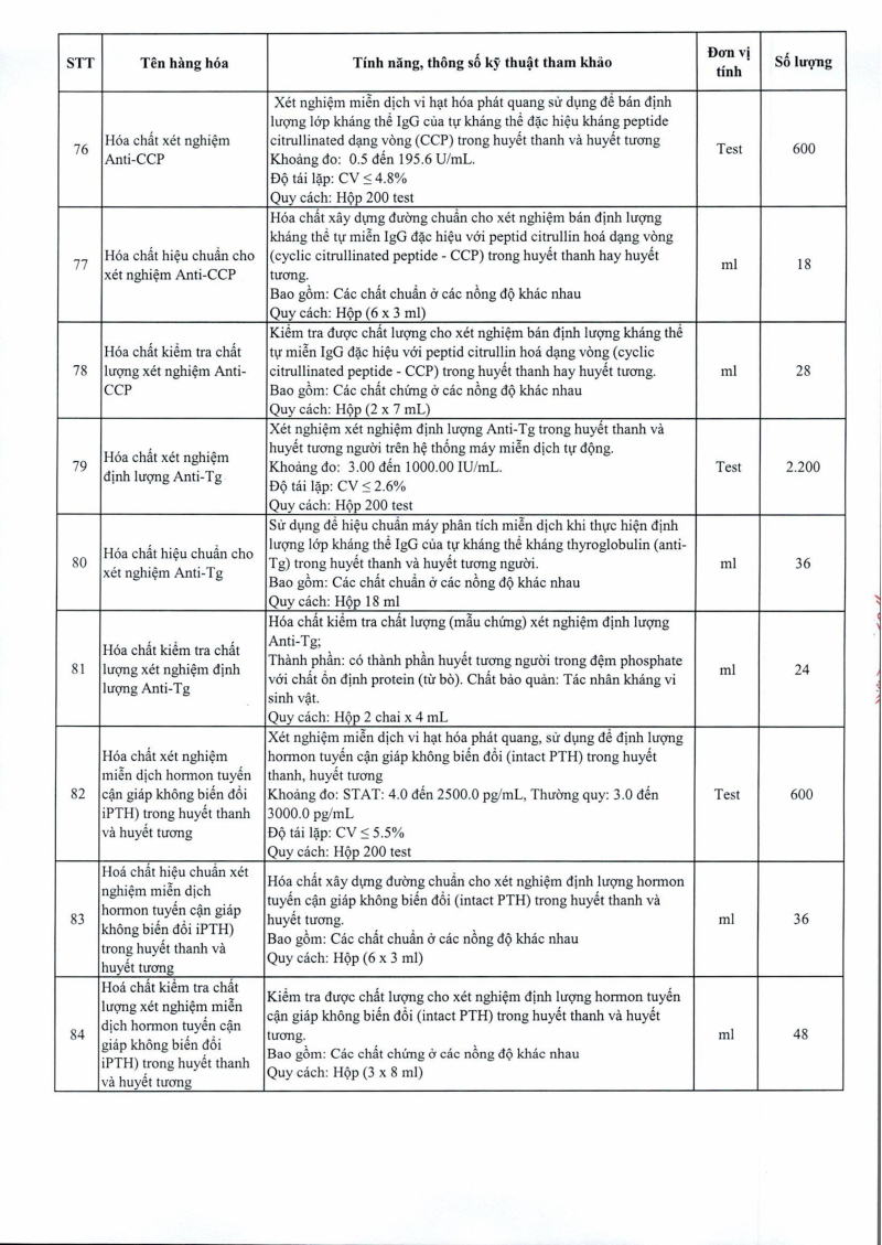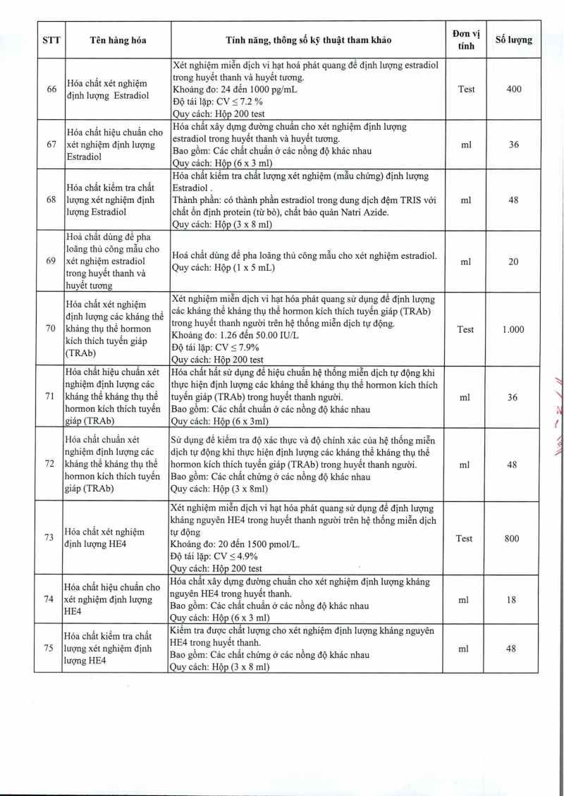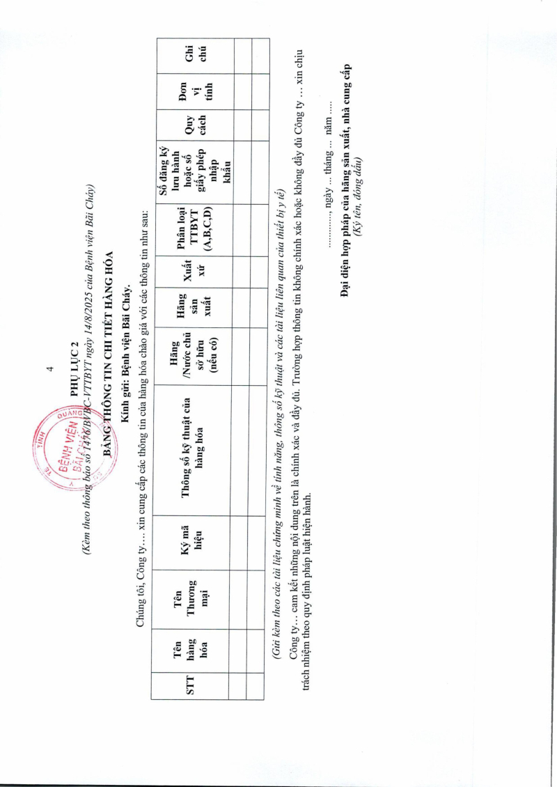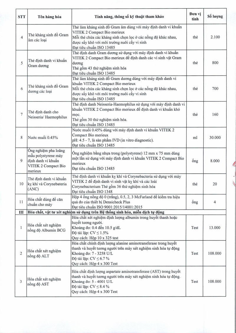 Thông báo 1476 về nhu cầu mua sắm hóa chất, vật tư xét nghiệm phục vụ công tác chuyên môn của bệnh viện năm 2025,2026 đợt 4 2025/08/14 08:07