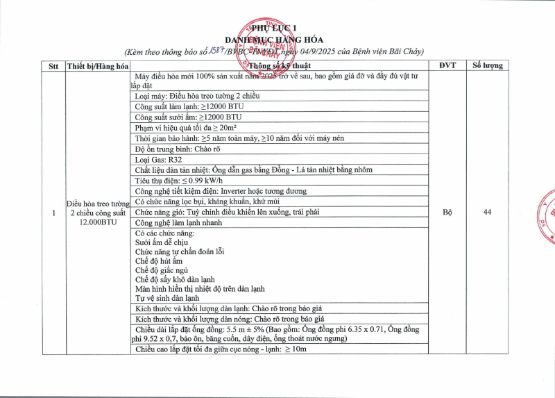 Thông báo 1587 nhu cầu mua sắm thay thế điều hòa cũ hỏng tại Bệnh viện Bãi Cháy 2025/09/04 07:19 Thông báo 1587 nhu cầu mua sắm thay thế điều hòa cũ hỏng tại Bệnh viện Bãi Cháy
