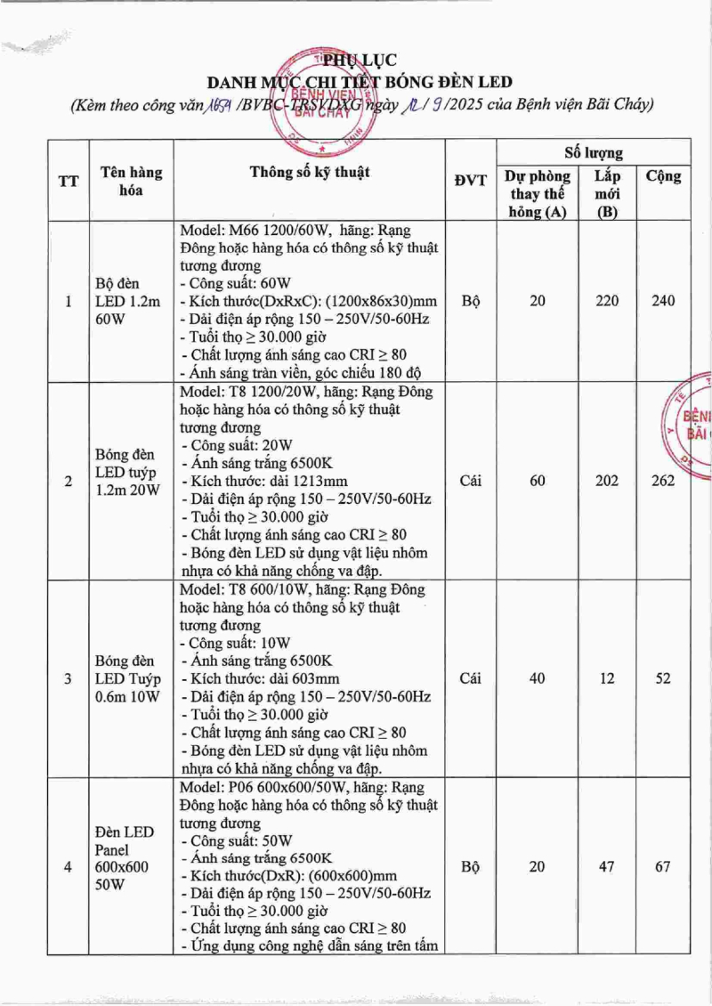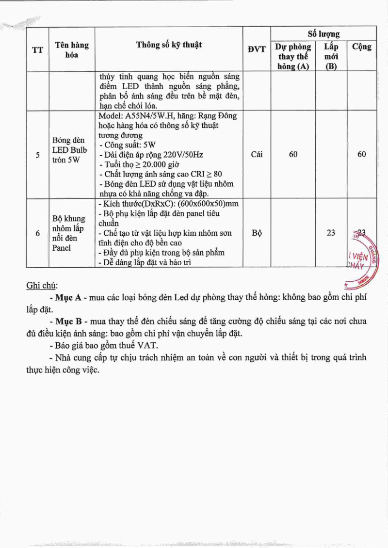Thông báo 1654 nhu cầu mua sắm bóng đèn led