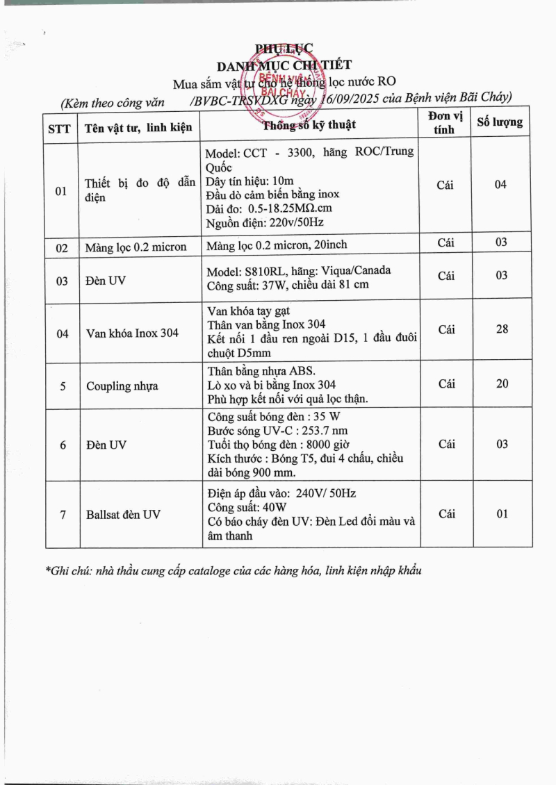 Thông báo 1678 nhu cầu mua sắm vật tư cho hệ thống lọc nước RO