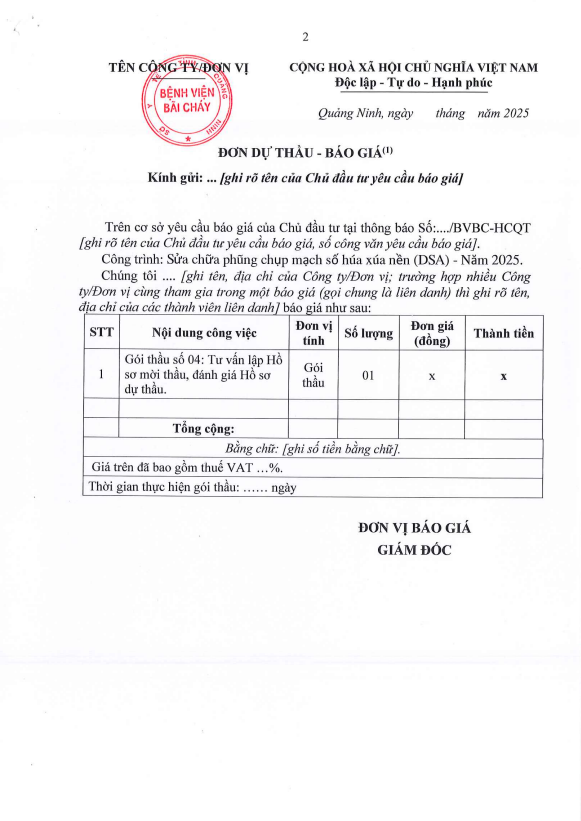 Thông báo 1688 nhu cầu thuê các công ty/đơn vị tư vấn công trình, sửa chữa phòng chụp mạch số hóa xóa nền