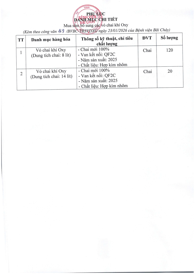 Thông báo 169 về nhu cầu mua sắm bổ sung các vỏ chai khí ô xy