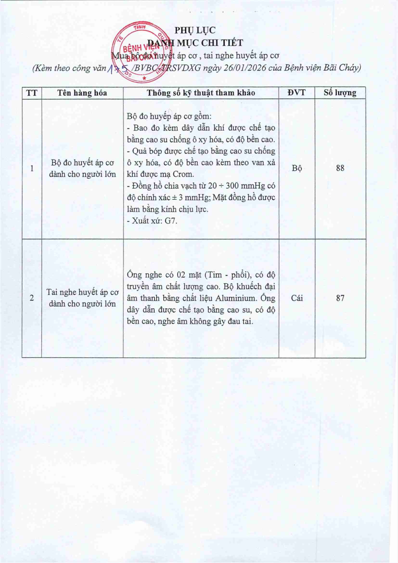 Thông báo 175 nhu cầu mua bộ đo huyết áp cơ, tai nghe huyết áp cơ 2026/01/26 09:17 Thông báo 175 nhu cầu mua bộ đo huyết áp cơ, tai nghe huyết áp cơ