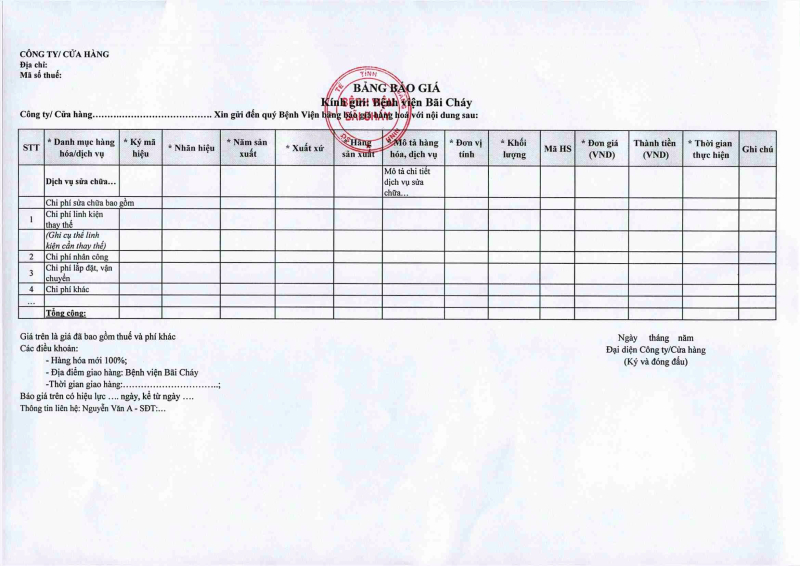 Thông báo số 622 về nhu cầu bảo dưỡng định kỳ máy hấp tiệt trùng HS–5035